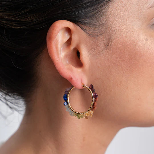Estas aretas de chakras tienen los cristales correspondientes a la frecuencia y vibración de cada centro energético.