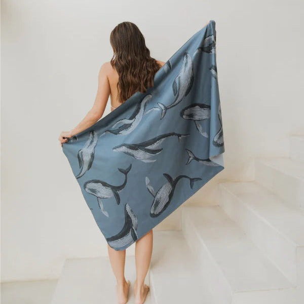 Toalla estampada de microfibra, incluye elástico para colgarla y facilitar su secado, vienen en empaque de tela para que la lleves a todas partes!